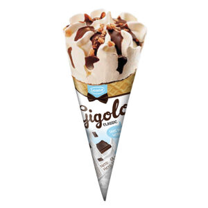 Monte sladoled na štapiću s dva kremasta sloja sladoleda prekrivena hrskavom, mliječnom čokoladom.