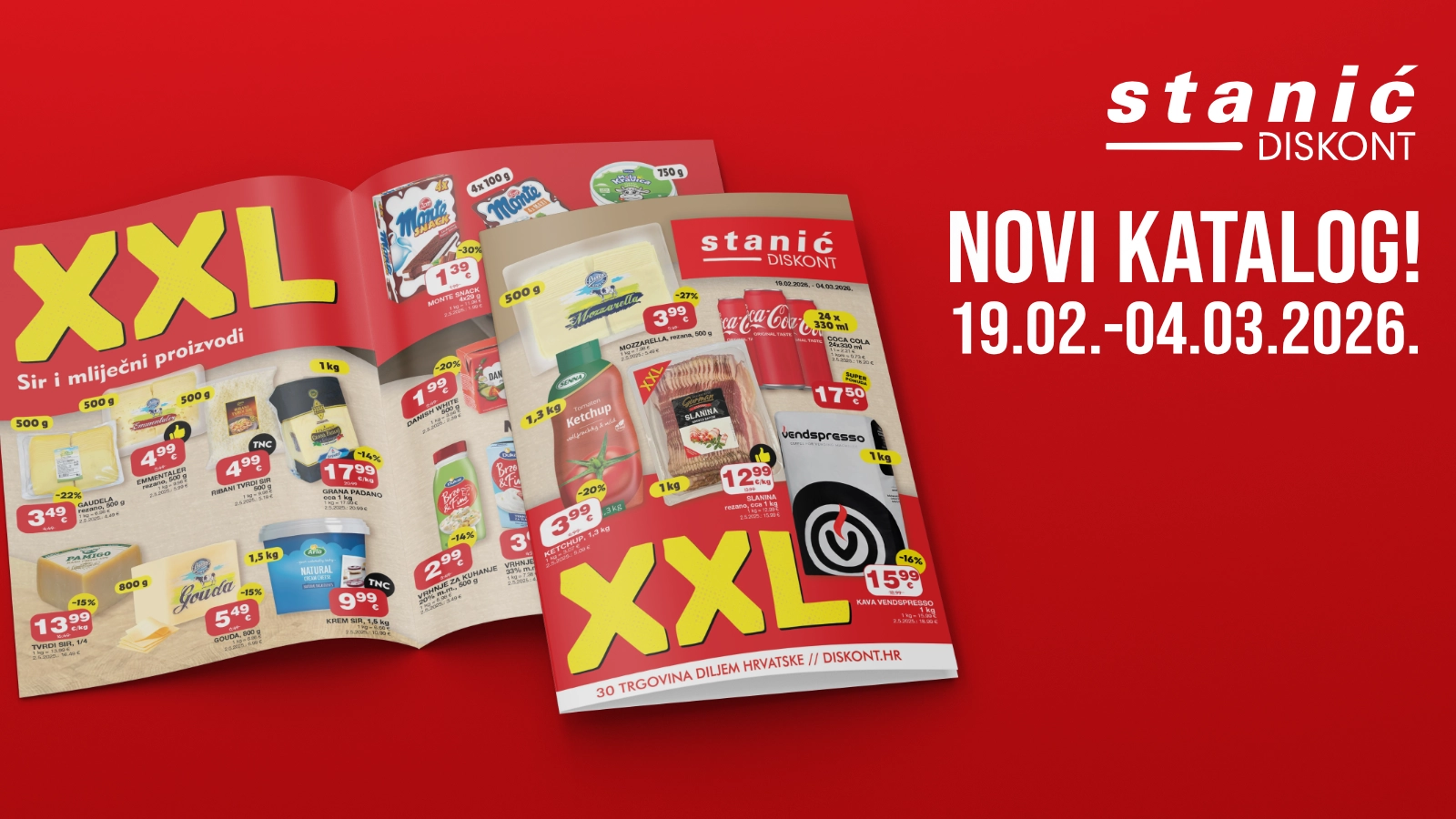 Stigao je naš novi katalog i s veseljem predstavljamo ponudu koja traje od 19. veljače 2026. do 04. ožujka 2026. godine. U novom katalogu očekuju vas velika XXL pakiranja za velike XXL uštede, osmišljena kako bi vam pružila više omiljenih proizvoda po još povoljnijim cijenama.
